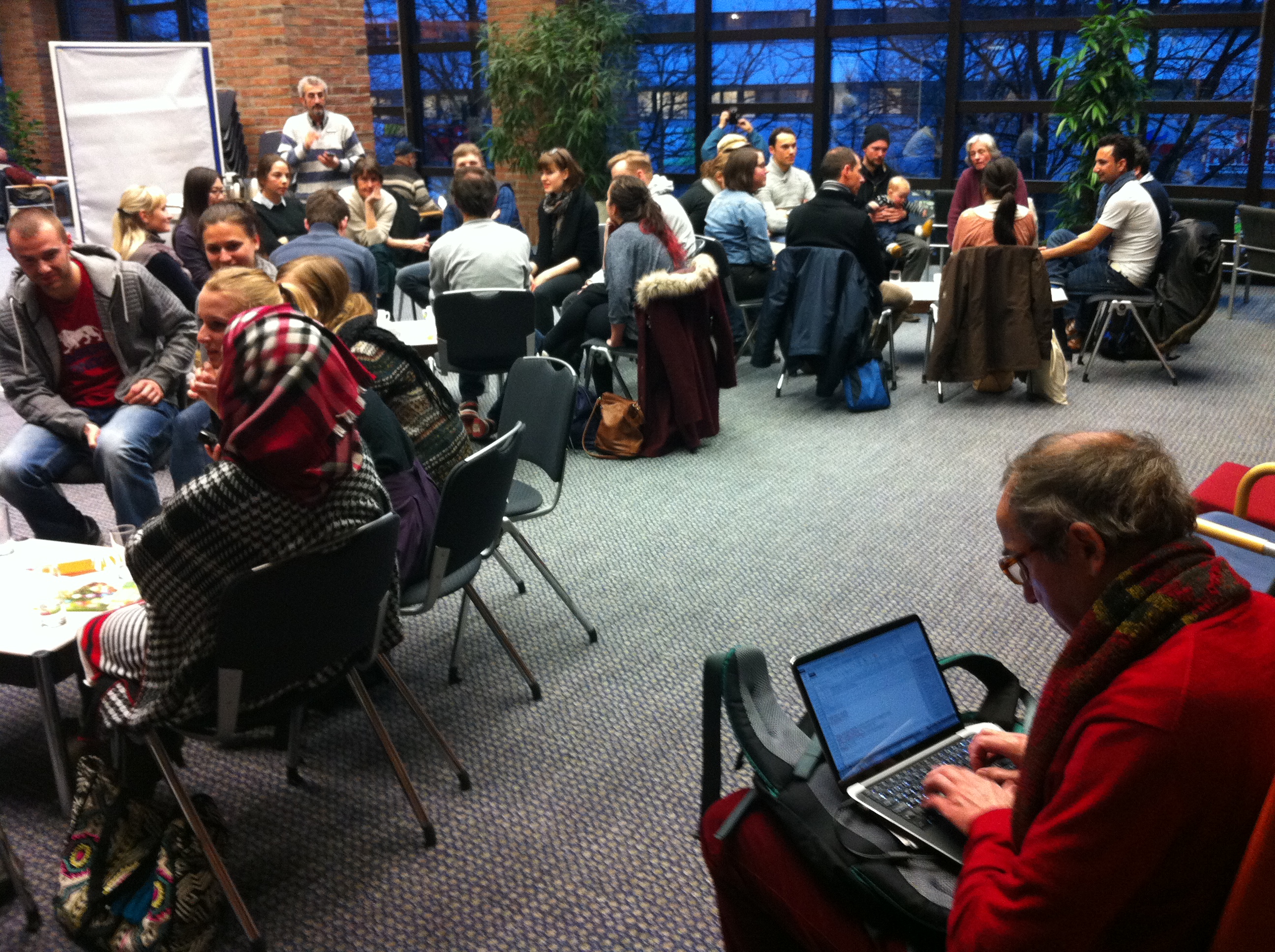 On this pilgrimage into society, walking no longer has priority. We want to meet people to swap ideas and inspire each other. In the simplest form, we do this under the title ‘green thoughts’—an exchange of one to two hours with a few or many interested people. We ask strangers in the street, in a café, or in front of their homes if we can stay with them. Some people ask their friends and network if somebody wants to host us for a while. People we hardly know will ask us if we want to live in their house for a few weeks while they are away.