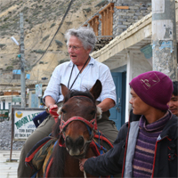 Tara is a Professor of Communication, Emeritus, world traveler and Treasurer of the Board of Directors of Kosmos Associates, Inc. She recently led a Kosmos-sponsored trek to ancient Mustang, with Rinzin Sherpa, her Nepalese friend. She has traveled to more than 30 countries in all as a spokesperson and advocate for Komos.